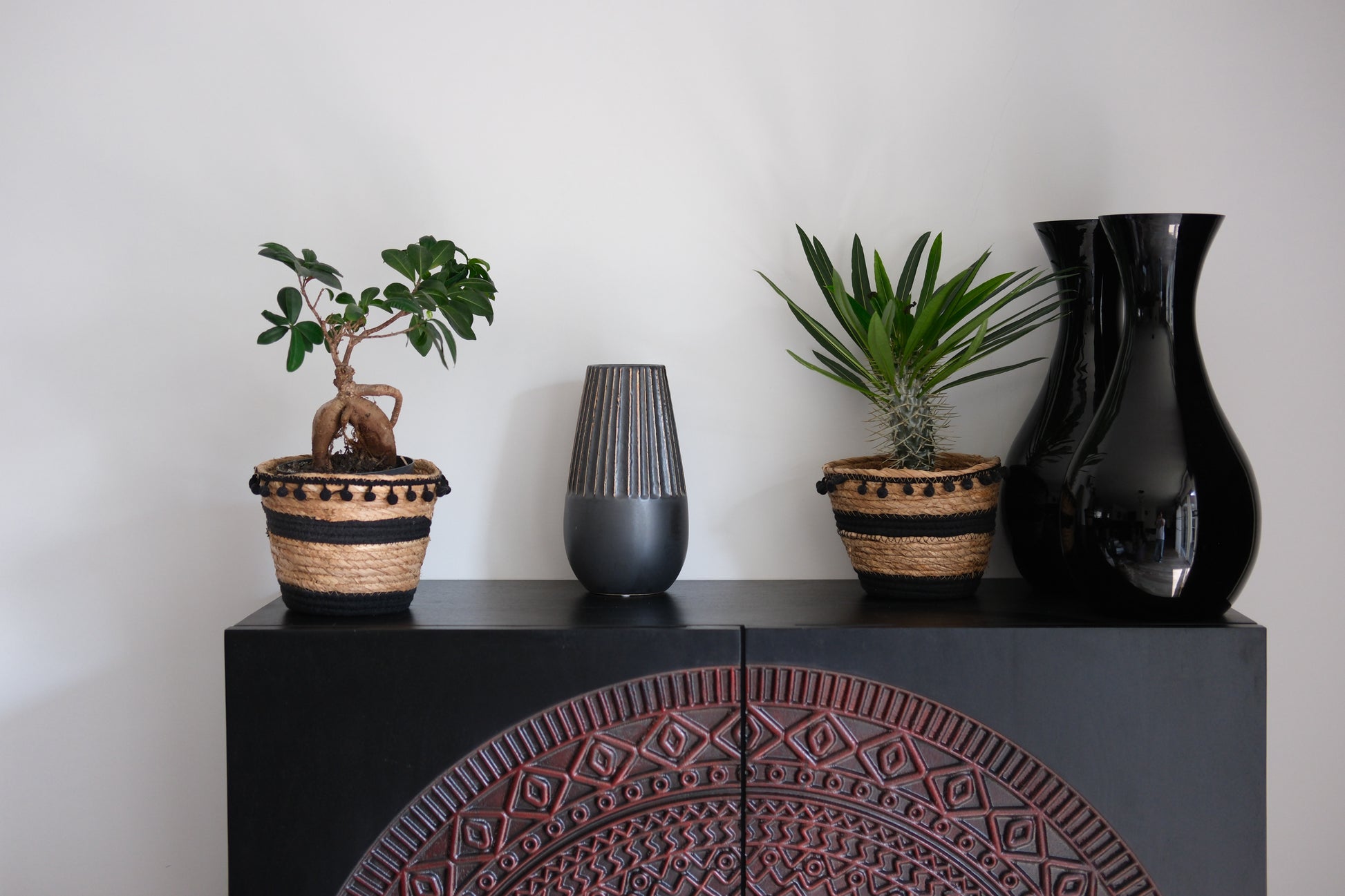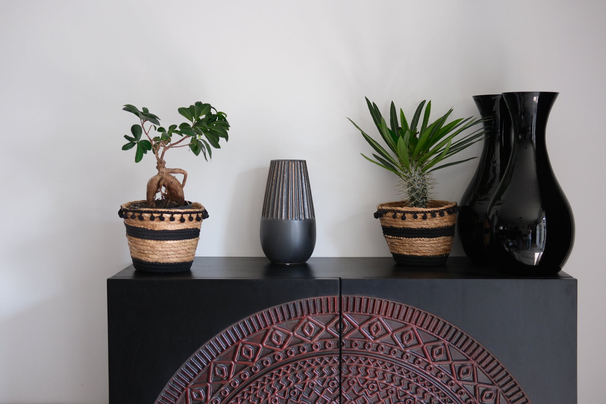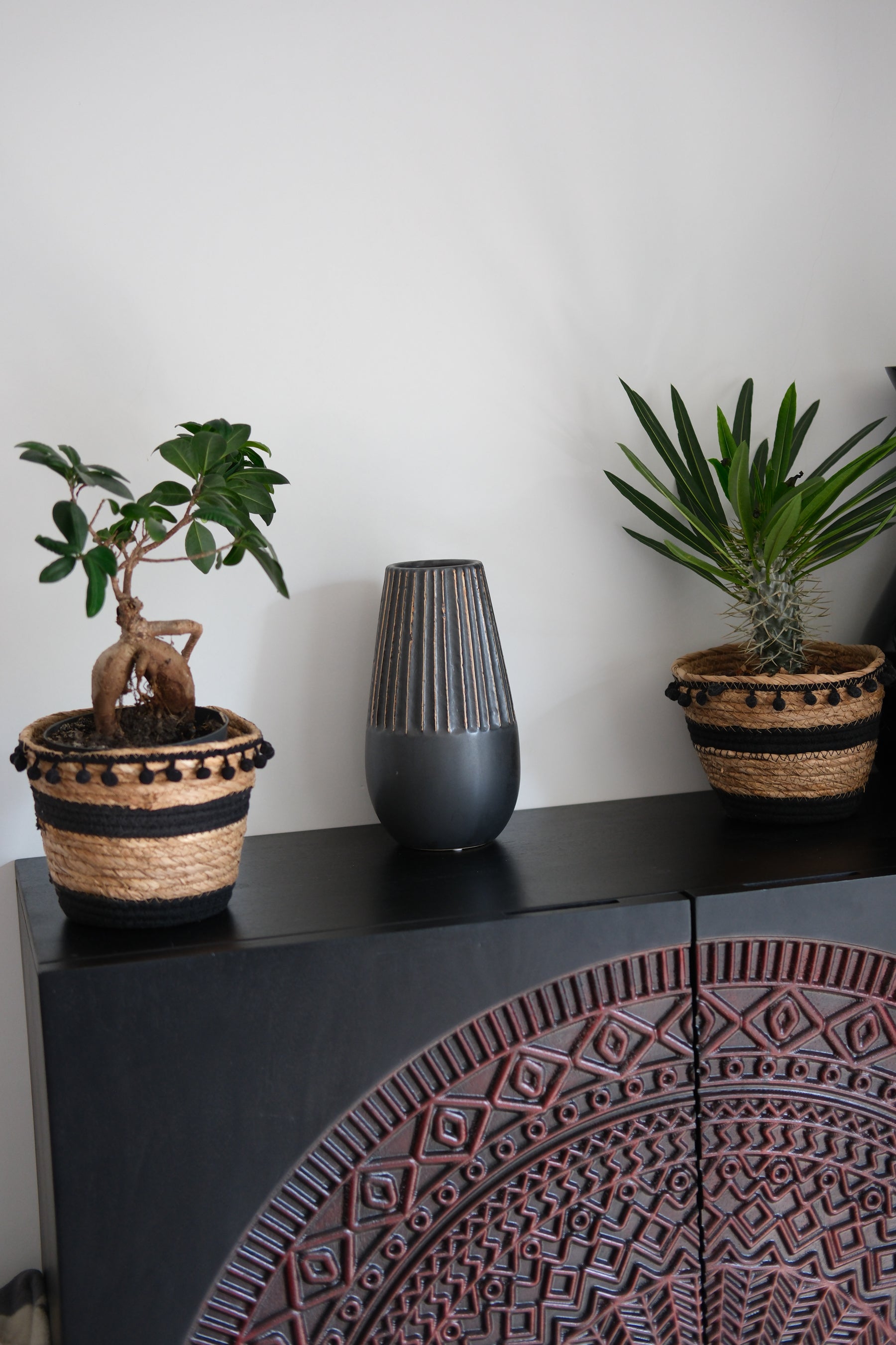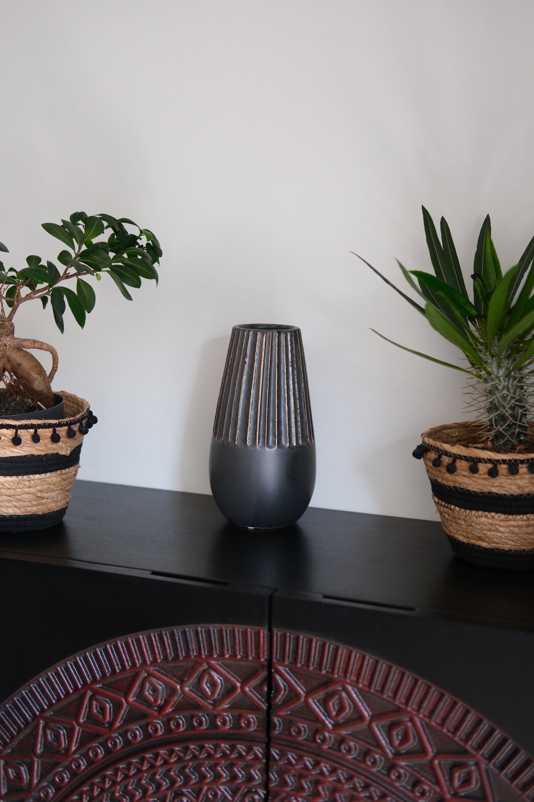 Boho Vaas "Strips" – Zwart – H 25 cm